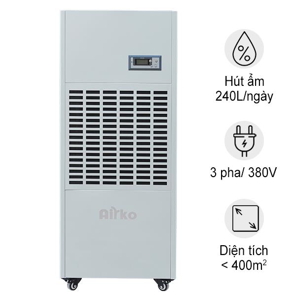 Công suất hút ẩm của Dorosin/Airko DP-10S là 240 lít/ngày, công suất hoạt động là 4450W. Với thông số này, thiết bị phù hợp để hút ẩm trong những không gian có diện tích trên từ 350-400m2 như nhà xưởng, kho lưu trữ,...